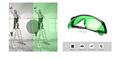 Demper alle andre farger, men lar den grønne fargen, fra f.eks. Elma kryss- og linjelasere, skinne tydelig gjennom.